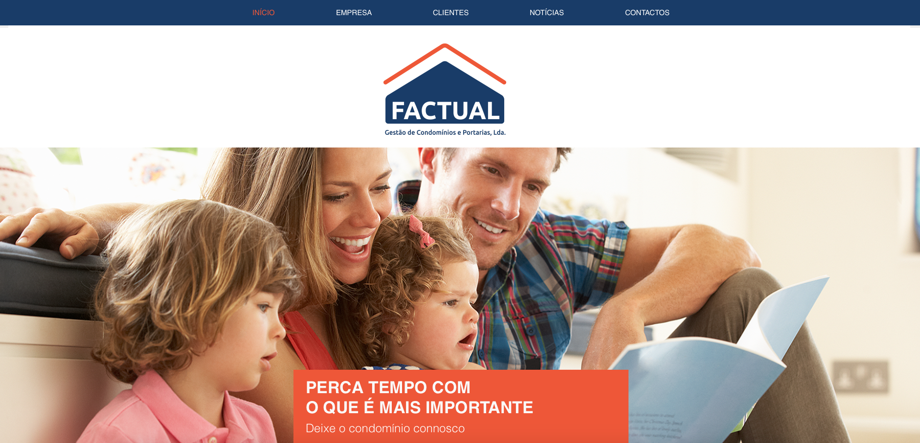 Privilegiando a comunicação de qualidade com os seus clientes, a Factual desenvolveu, em parceria com a Web designer Carolina Flores um novo SITE, caracterizado pela facilidade de navegação e pelo design moderno e funcional. Desta forma pretende-se transmitir aos condóminos e futuros clientes a nova imagem da empresa, fornecendo informações sobre a nossa carteira de clientes e serviços prestados.